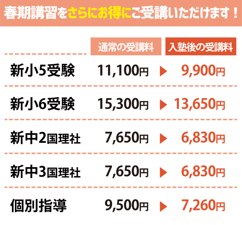 母子父子家庭の場合、春期授業料5%OFF!
